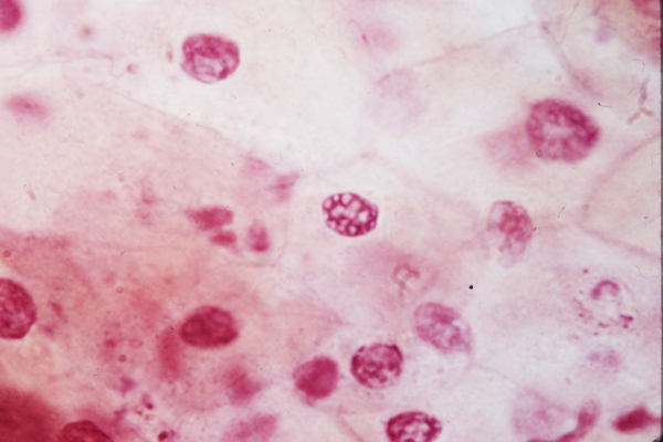 Buccal mucosa: malignancy-associated nuclear structure of prominent spheres with uniform diameters (from patient with colon adenocarcinoma)