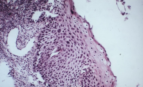 (see high power: AACR_Scan04.jpg) High-grade intraepithelial neoplasia of uterine cervix (duplicate: DSC_1475.jpg)