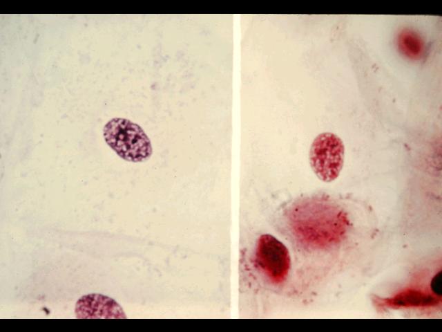 Left – Bucccal cell 9 years prior to bronchogenic carcinoma
